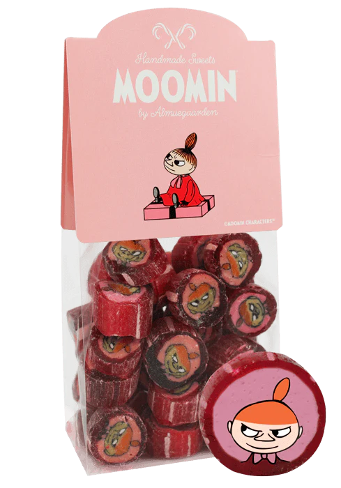 Disse Mumi bolcher er håndlavede i Danmark af det lille familiedrevne bolchekogeri Almuegaarden, ved brug af de bedste naturlige ingredienser, traditionelt dansk håndværk og med fuld respekt for Tove Jansonns originale Mumi illustrationer.