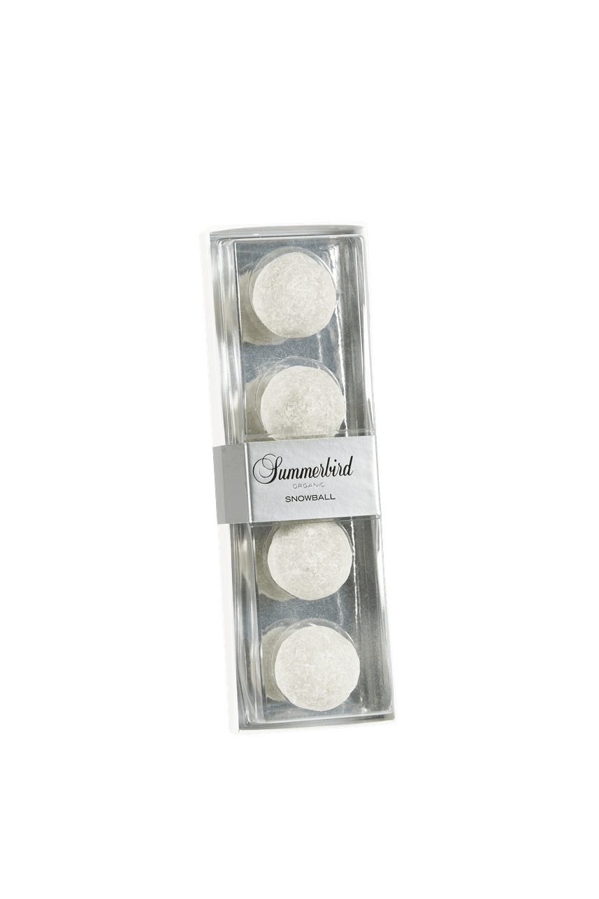 Snowballs i en perfekt konstellation af nougat og marcipan, lavet på stenvalsede middelhavsmandler, overtrukket med mørk chokolade Amazonas 61 % og herefter drageret i vores prisvindende hvide chokolade, White Vanilla. Afslutningsvis er de vendt i snehvidt florsukker.